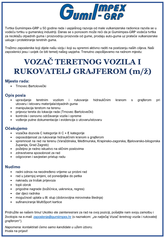 Napomena: samo kandidati užeg izbora bit će kontaktirani, ostale prijave pohranjujemo u našu bazu kandidata. Zahvaljujemo na vašem razumijevanju.